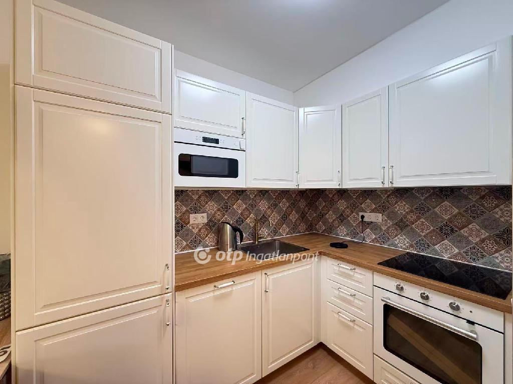 A modern építészeti irányzatoknak megfelelő, liftes, négyemeletes társasház kifinomult megjelenésű és praktikus elrendezésű. A biztonságos, zárt és ízlésesen kialakított lépcsőházból a tágas, beépített gardróbbal ellátott előszobába léphetünk. Bal oldalon található a kádas fürdőszoba, egy különálló tárolóhelyiség, valamint a hálószoba. A lakás központi része a világos, keleti fekvésű, amerikai konyhás nappali, amely közvetlen kijáratot biztosít a teraszra és a gondozott kertre, mind a nappaliból, mind a hálóból megközelíthetően.