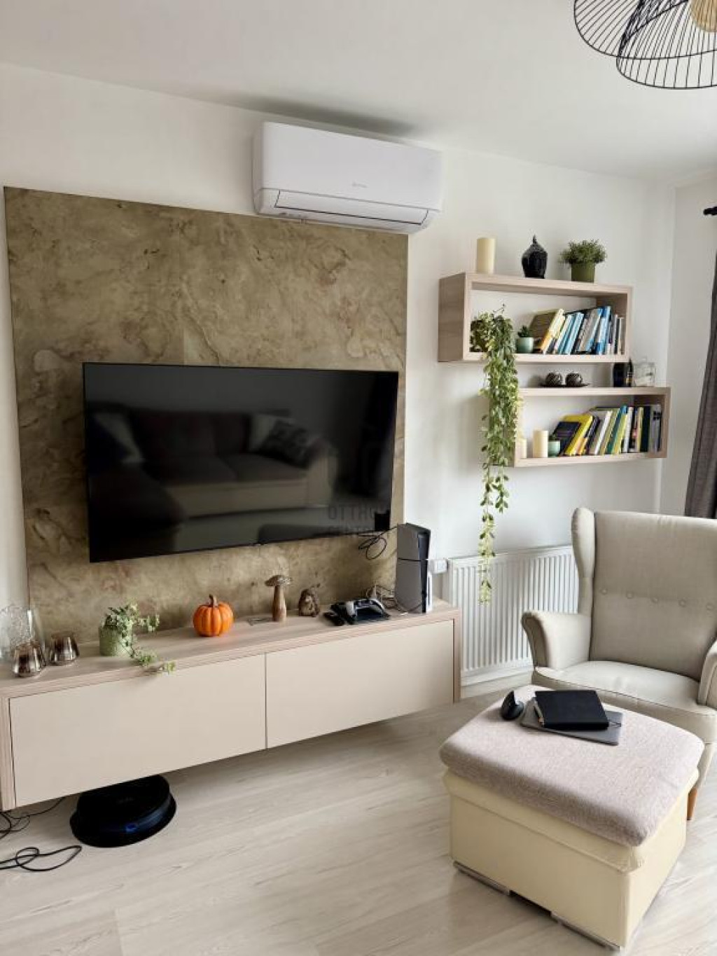 A lakás világos, praktikus és átgondolt kialakítású, minden részletében minőségi megoldásokkal.