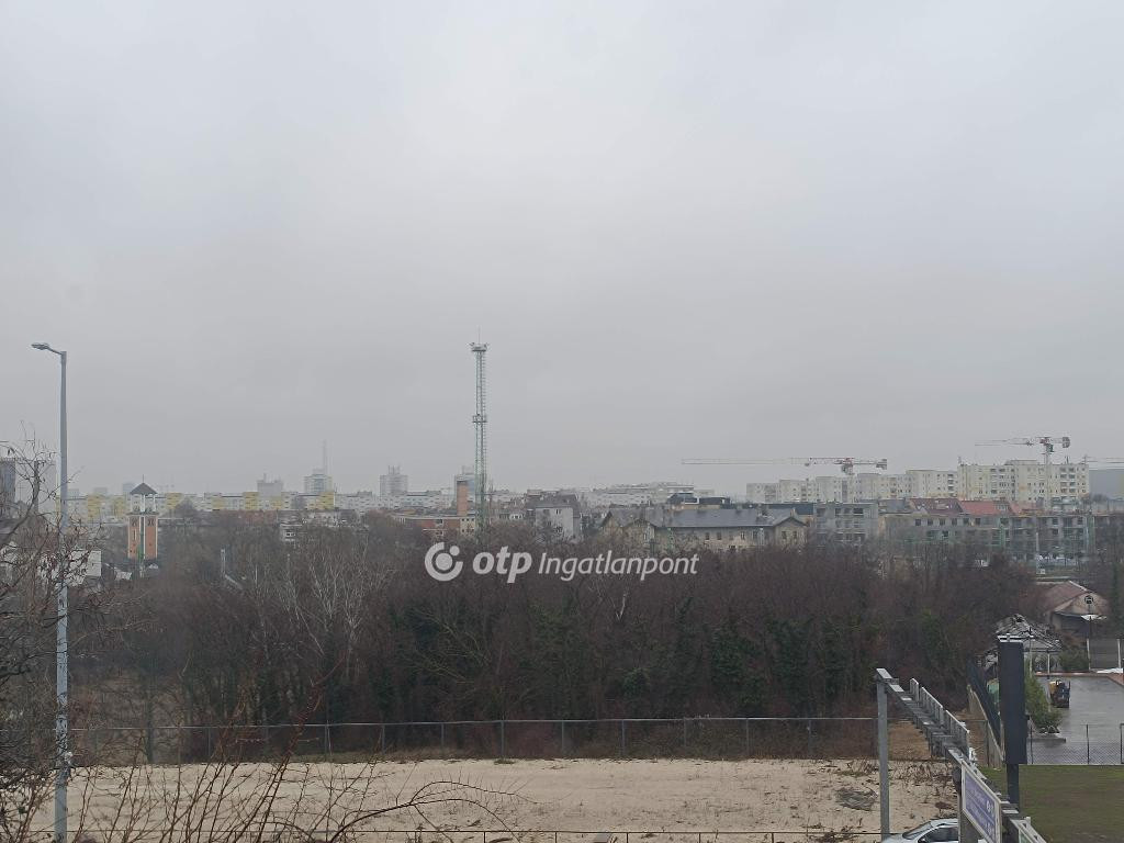 A szobák a kertre és a Budaörsi útra néznek, a panoráma Kelenföld felett egészen a MOL toronyig ellát.