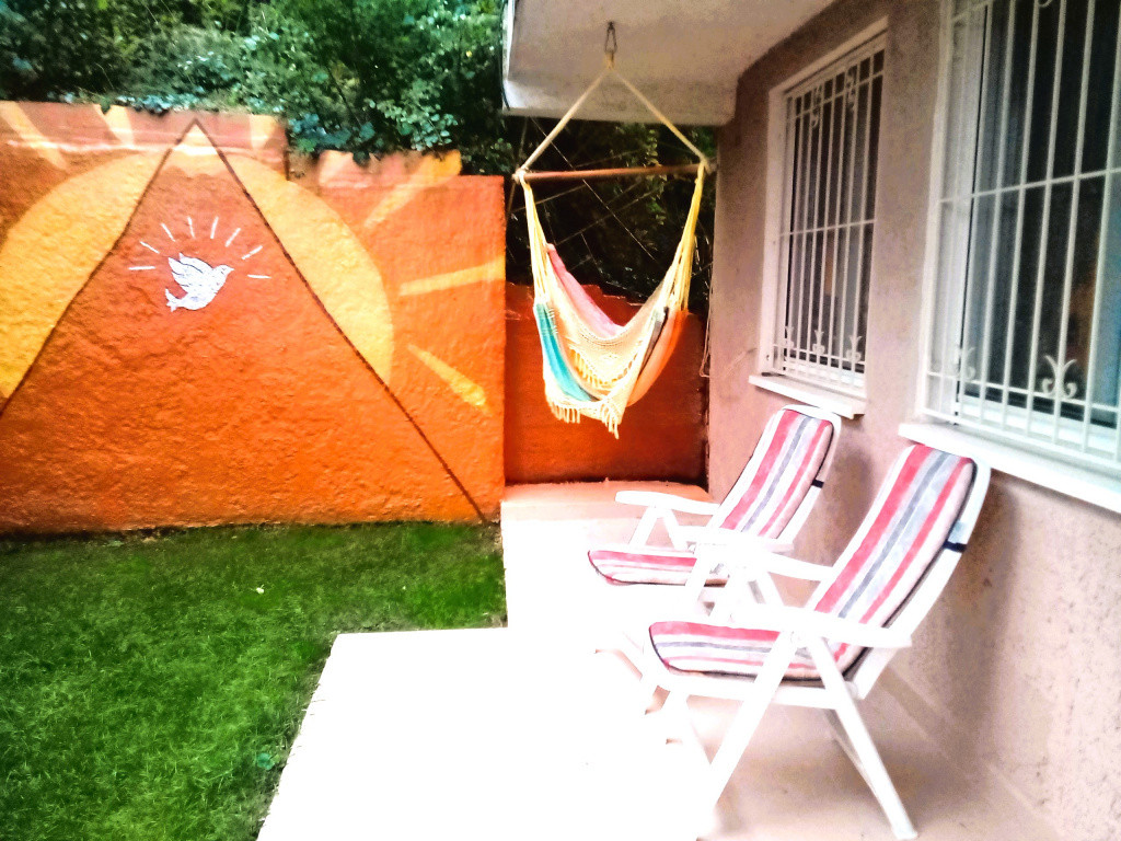 A ház hegyoldalra épült ezért néhány lépcsőn fel kell jönni a lakáshoz.