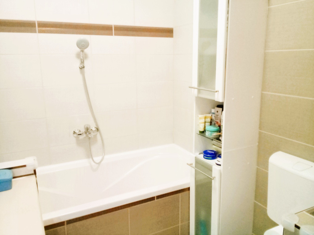 Az ingatlan egy teljeskörű felújításon esett át, ezalatt értem az összes villany- és vízvezeték, műanyag nyílászárók cseréjét, új radiátorokat kapott és a vizes helyiségekben járólappal, csempével burkoltak. A szobákban, az előszobában és a konyhában laminált padló került lehelyezésre. Beépített konyhabútor a vételárat képezi a gépekkel együtt. Fürdő és a wc egyben található, új szanitereket kapott, teljesen fel lett újítva. Hátul saját kertje van, kerti csappal: kb. 25-30 nm terület, csodálatos panorámával a Budai várra, Bazilikára és környékére, reggeli napfelkeltével.