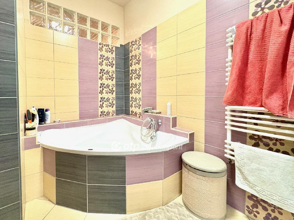 A lakás 14 évvel ezelőtt, emeletráépítés következtében került kialakításra. A lakás újszerű, az elektromos-, víz-és gázvezetékeket teljesen újak. Új kondenzációs gázkazán és légkondicionáló berendezés került beépítésre, aminek köszönhetően egész évben biztosított a kellemes hőérzet. A nyílászárók műanyagok. Az amerikai konyhás nappali és a fürdőszoba kellemes, modern hangulatú.