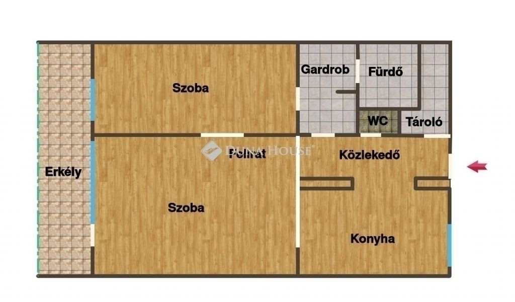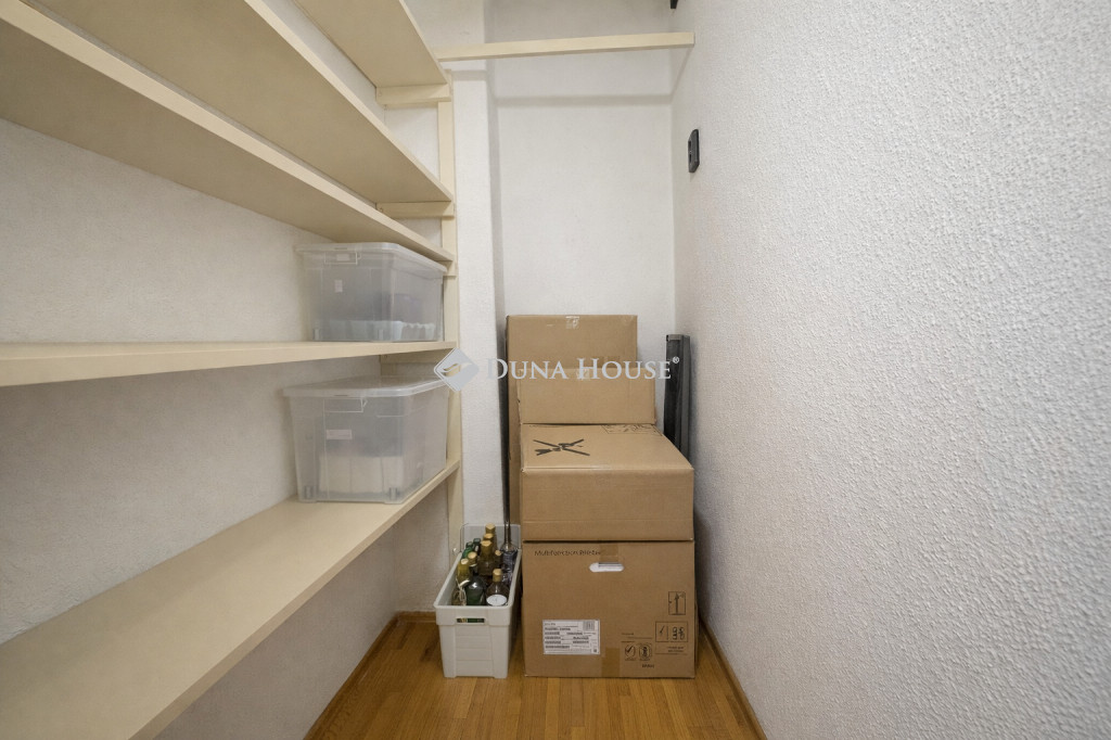 Az ingatlan egyik legnagyobb előnye a kiváló térkihasználás és a nagyvonalú elrendezés: két tágas szoba, világos, jól használható konyha, külön gardrób és lakáson belüli tároló biztosítja a kényelmes mindennapokat. A lakáshoz egy körülbelül 10 m²-es erkély is tartozik, amely további életteret kínál, valamint a társasházban egy külön, 4 m²-es saját tároló is rendelkezésre áll.
