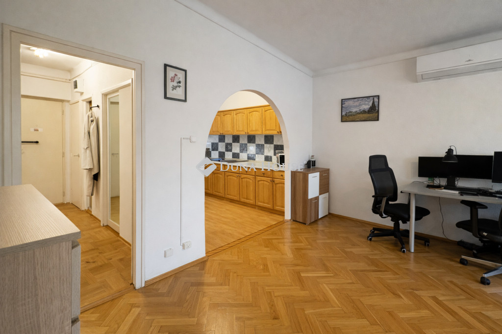Budapest XI. kerületének egyik legkeresettebb, kiváló infrastruktúrával rendelkező, mégis nyugodt részén kínálunk megvételre egy 76 m²-es, tágas, jól alakítható lakást egy négyszintes, téglaépítésű társasház 3. emeletén.