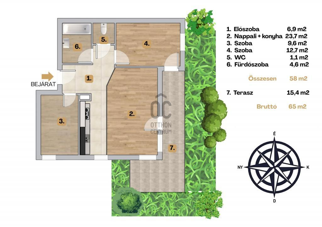 Földszinti elhelyezkedésű, nettó 58 m²-es, nappali + 2 szobás, világos és tágas terekkel rendelkező ingatlan.