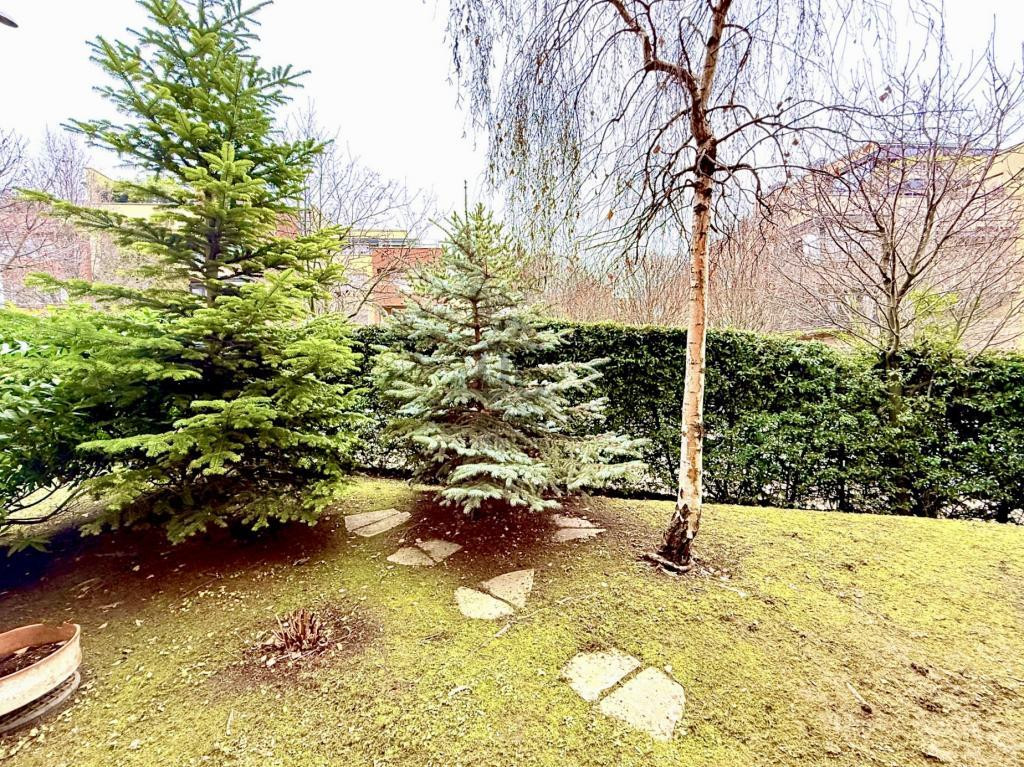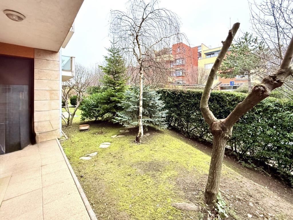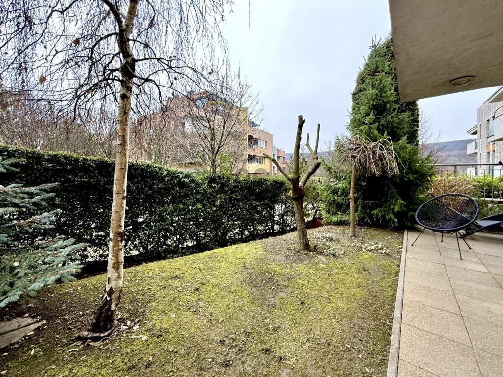 A növényzettel körülvett intim terasz 15 m²-es, a hozzá tartozó kertrész gondozását a ház kertésze végzi.