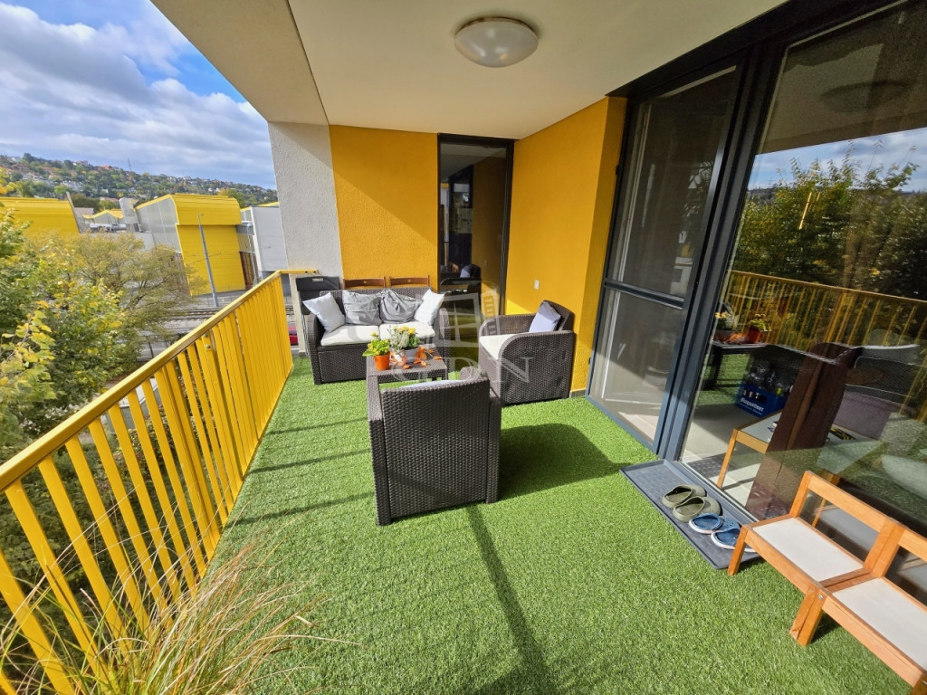 XI. kerület Albertfalván, a TETRIS HÁZ lakóparkban egy gépesített és bútorozott konyhával rendelkező, délkeleti fekvésű, 65m2-es hasznos alapterületű+11m2 fedett erkélyes, nappali + 2 hálószobás, újszerű lakást kínálunk megvételre!