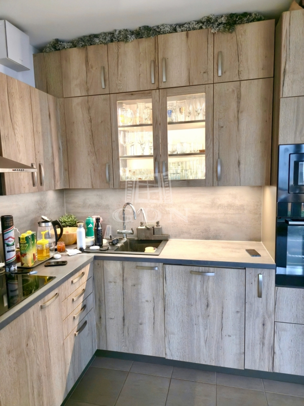 -beépített konyhabútor Led világítással, kerámia főzőlappal, sütővel és páraelszívóval