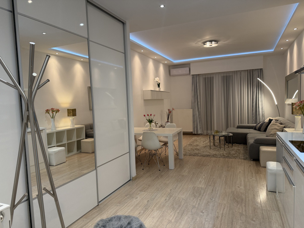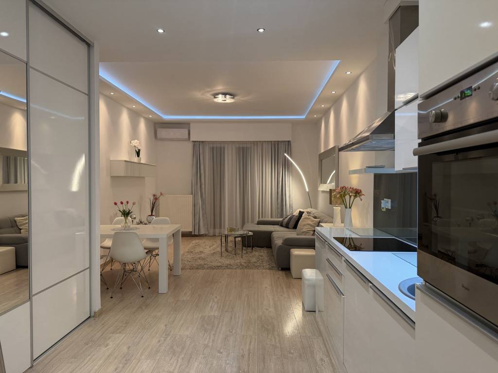 Eladásra kínálok egy teljes körűen felújított 49 m2 alap terüetű, amerikai konyhás nappali + hálószobás erkélyes lakást, saját zárt zöld udvarral. Az amerikai konyhás nappali konyhabútorral, beépített hűtővel, mosogatógéppel, villanysütővel, kerámia-főzőlappal, szag és páraelszívóval, mikrohullámú sütővel felszerelt, laminált parkettával burkolva, innen nyílik az erkély. A hálószoba külön nyíló, belső zárt udvarra néző. A fürdőszoba mosdóval, káddal felszerelt, a toalett külön helységben kapott helyet. A bejárat mellett egy tároló helység került kialakításra, ami gardróbnak és kamrának is használható.