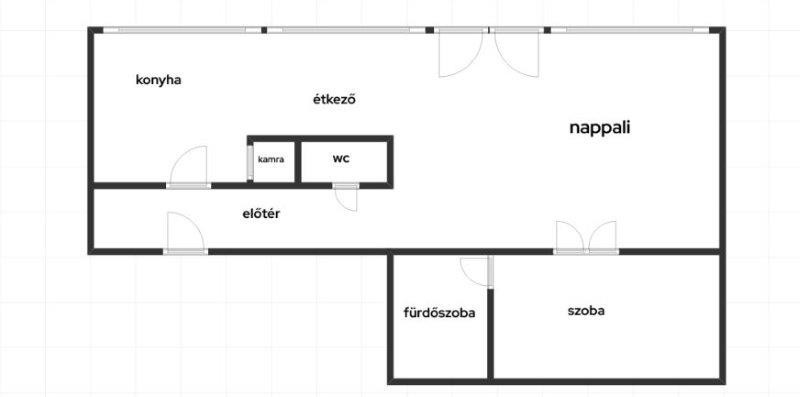 Helyiségek: előszoba, nappali, hálószoba, konyha, étkező, fürdőszoba-WC, külön WC valamint beépített terasz.
