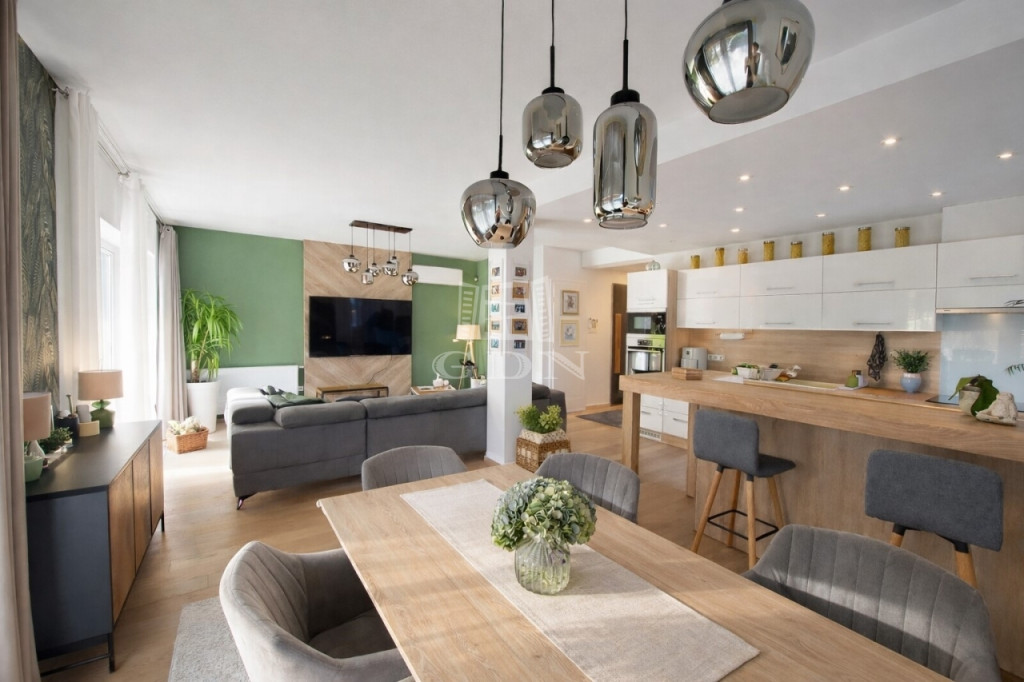 A 139 m²-es, kivételes adottságú ingatlan tágas, világos terekkel rendelkezik, négy különnyíló szobája kényelmes, jól élhető elrendezést biztosít akár családnak, akár reprezentatív otthont keresők számára.
