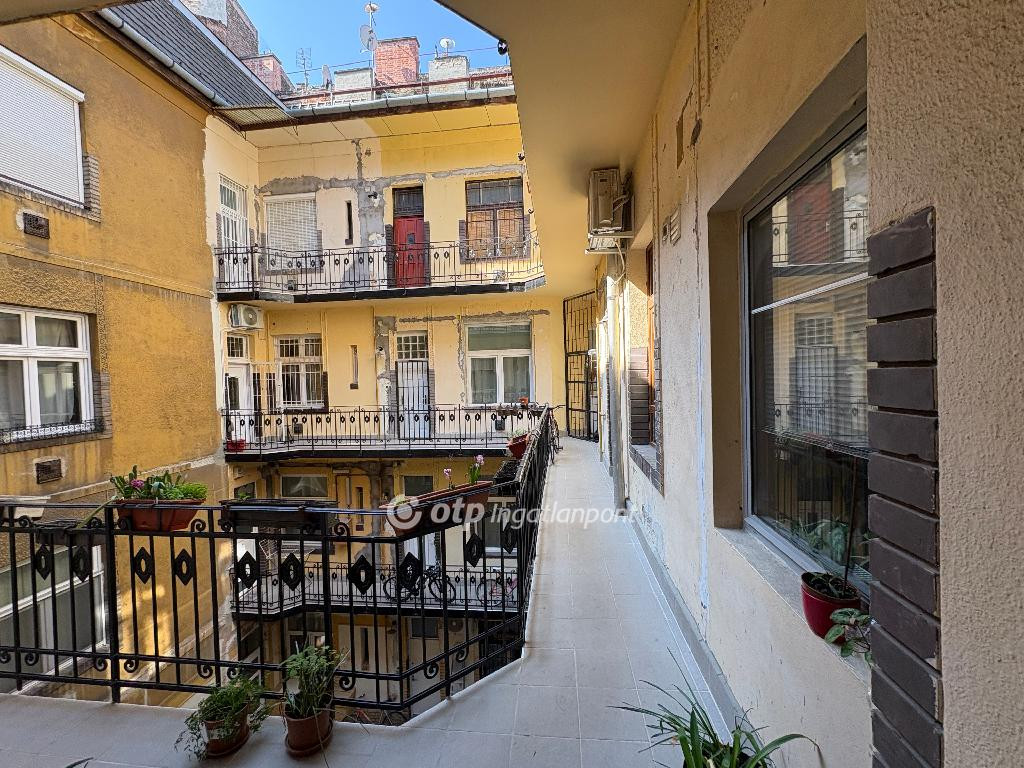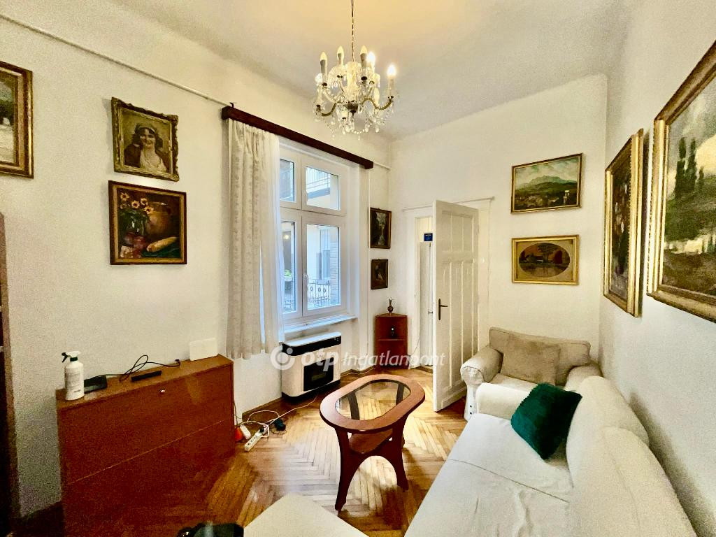 A lakás két külön nyíló szobából áll, a padló szép, eredeti faparkettával borított. A műanyag nyílászárók redőnyökkel ellátottak, a helyiségekben klíma gondoskodik a kellemes hőmérsékletről. A fűtés gázkonvektorral, a melegvíz villanybojlerrel működik. Az ablakok belső udvarra néznek, így a lakás csendes, nyugodt és jól szigetelt a városi zajtól.