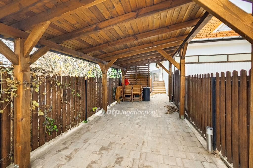 További extrák: a több ponton záródó biztonsági ajtó, riasztórendszer, elektromos kapu, 2 autó számára biztosított a parkolás.