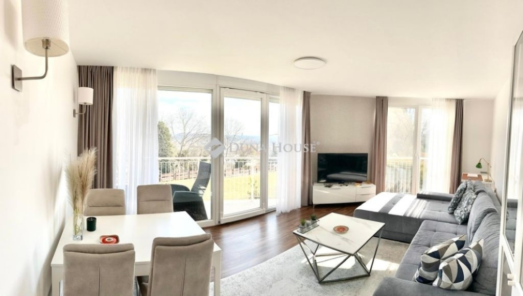 egy kör-alakú, prémium módon felújított, földszinti lakás, amelynek minden helyisége panorámás, és közvetlen kertkapcsolattal rendelkezik.