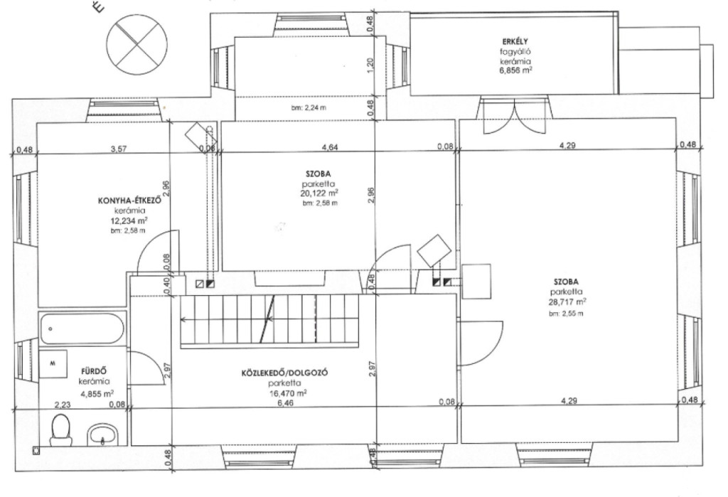 • 2 db. szoba 20,1 m2 + 28,7 m2