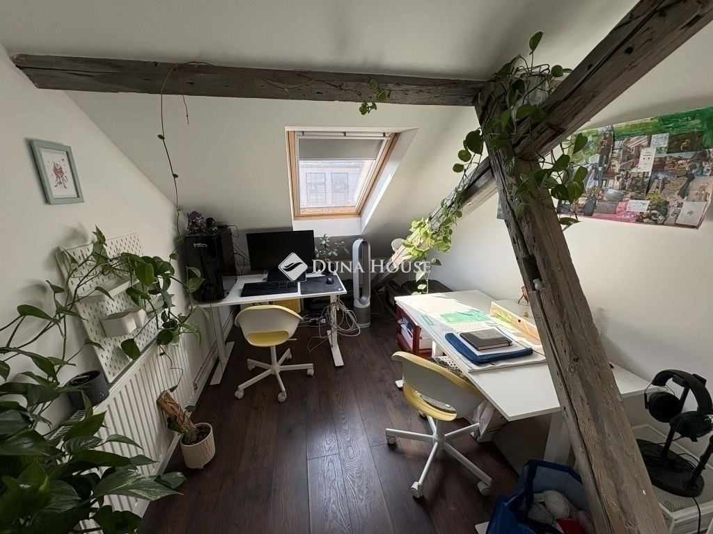 4.emelet (lift nélkül), tetőtéri, észak-kelet / dél-nyugat tájolás két frontos ingatlanNappaliból páratlan panoráma Főbb jellemzők:Nappali+2 szobaTeljes körű felújítás az elmúlt években: korszerűsített fűtés, légkondicionálás, modern belső megoldásokCirkófűtés: 5 évesLégkondik: mindkét fronton telepítveA társasház folyamatosan karbantartott, jó állapotú; lépcsőház felújítva az elmúlt években, tavalyi festés megtörténtBarátságos lakóközösség; gyerek- és kutyabarát környezetElhelyezkedés, szolgáltatások:Ház mellett játszótér; 100 m-en belül kis boltok, kávézók5 perces sétán belül: élelmiszerbolt, éjjel-nappali, DM, pékségek, cukrászda, fagyizó, hentes, gyógyszertár, termelői és biopiacKiváló tömegközlekedés: Pest és Moszkva tér ~15 perc, MOM és Déli pályaudvar ~10 percNormafa autóval ~10 percParkolóhely általában rendelkezésre állKöltségek:Rezsi: átlagosan 3050 ezer Ft/hó (közös költség tartalmazza a vizet; külön villany és gáz eltérés nyári/téli időszak szerint)Miért érdemes?Két frontos elhelyezkedés, kiemelkedő fény- és szellőzésviszonyokNappaliból nyíló erkély, szép panoráma és csendes tetőtéri hangulatGondozott társasház és élhető, jól felszerelt környék ideális családnak, pároknak, otthoni munkavégzéshez egyarántÉrdeklődni privát üzenetben vagy telefonon lehet szívesen küldök további képeket és időpontot a megtekintésre.