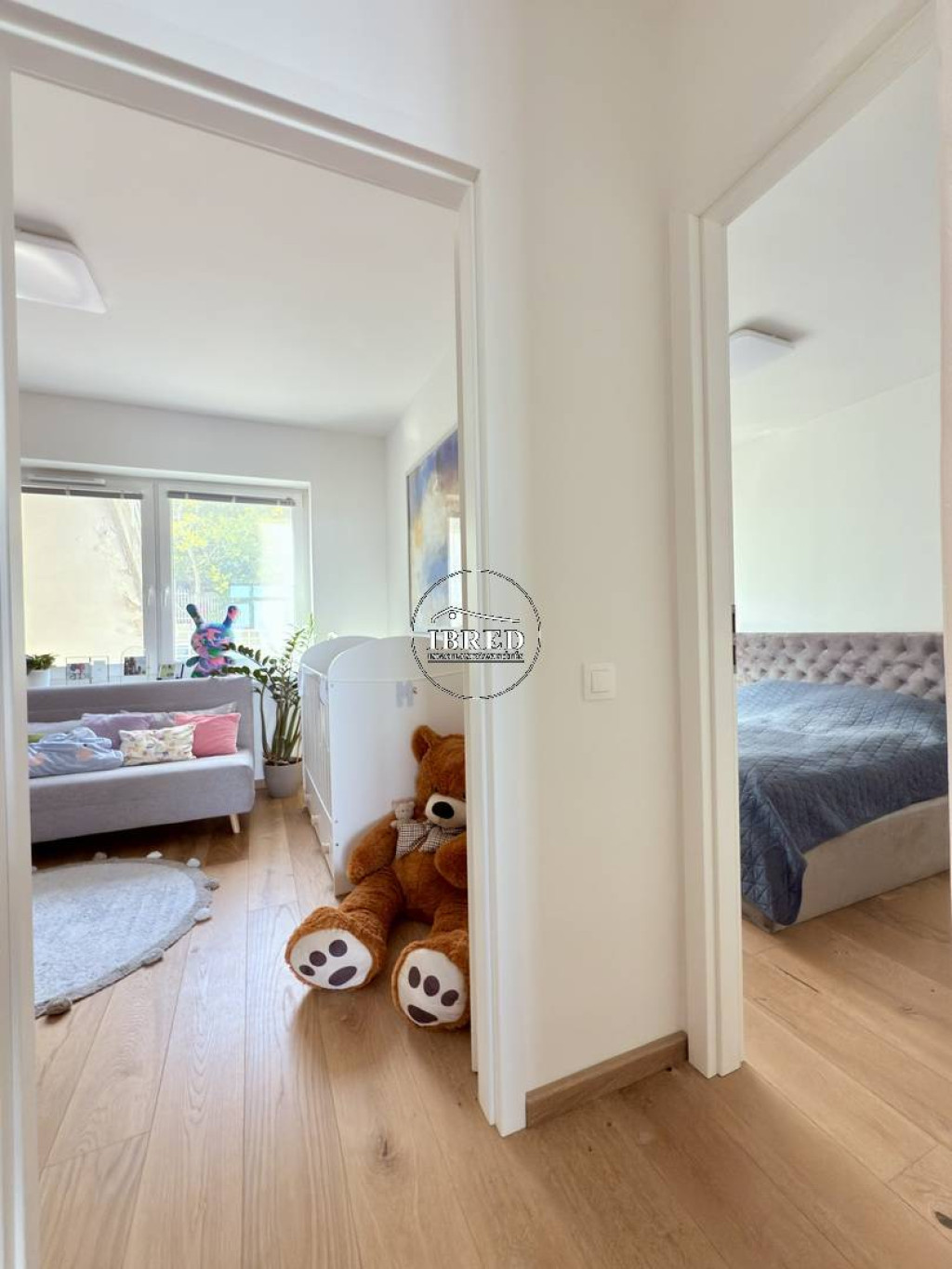 Az ingatlan az épület első emeletén helyezkedik el, saját, önálló bejárattal, ami diszkrét és kényelmes mindennapokat biztosít. A tágas előtérből nyílik egy külön mosdó, valamint egy praktikus háztartási helyiség is.