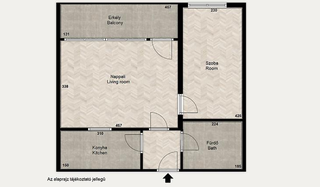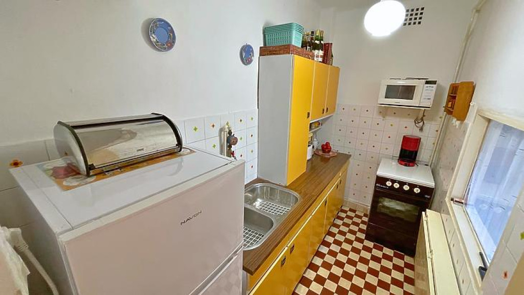 A nappali szomszédságában találjuk a két bejárattal is rendelkező, ugyancsak kedvező fényviszonyú, hálószobát és az előszobából nyíló praktikus, külön konyhát. Igény szerint a lakásban könnyen kialakítható egy modern, tágas amerikai konyhás nappali.