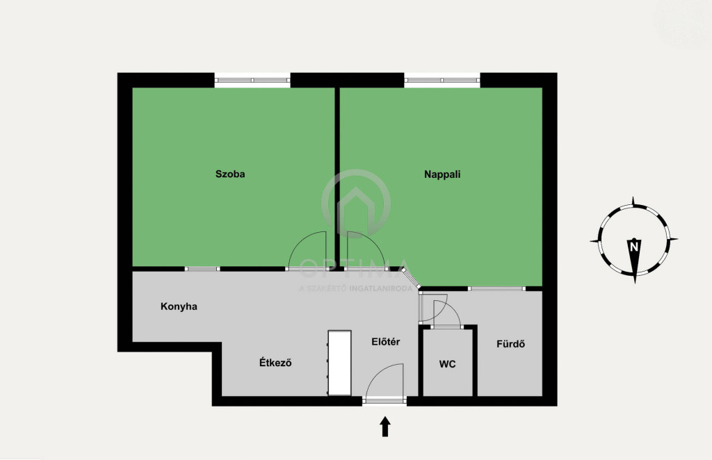 A lakás praktikus, jól használható elrendezésű, két nagy szobával, külön konyhával, étkezővel és fürdőszobával rendelkezik. A terek kényelmesen berendezhetők, a beosztás pedig saját otthonnak és kiadásra is jól működő megoldást kínál.