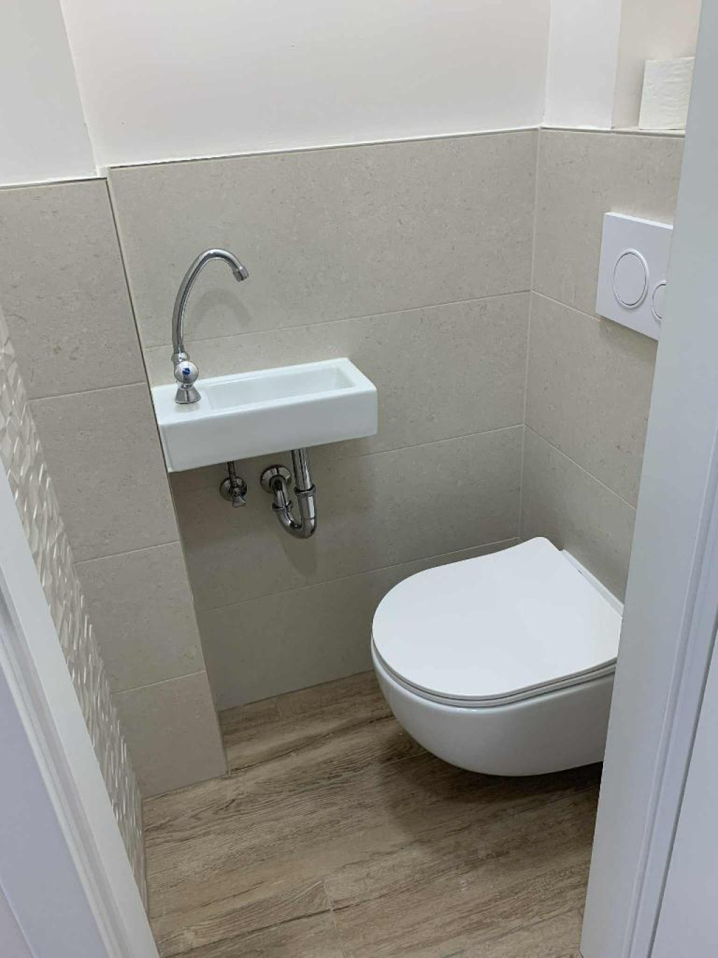 A fürdőszoba zuhanyzós, benne új mosógép és egy szintén új westen márkájú gázcirkó készülék, amely a melegvizet szolgáltatja és a lakás önálló fűtését, radiátoros hőleadással.