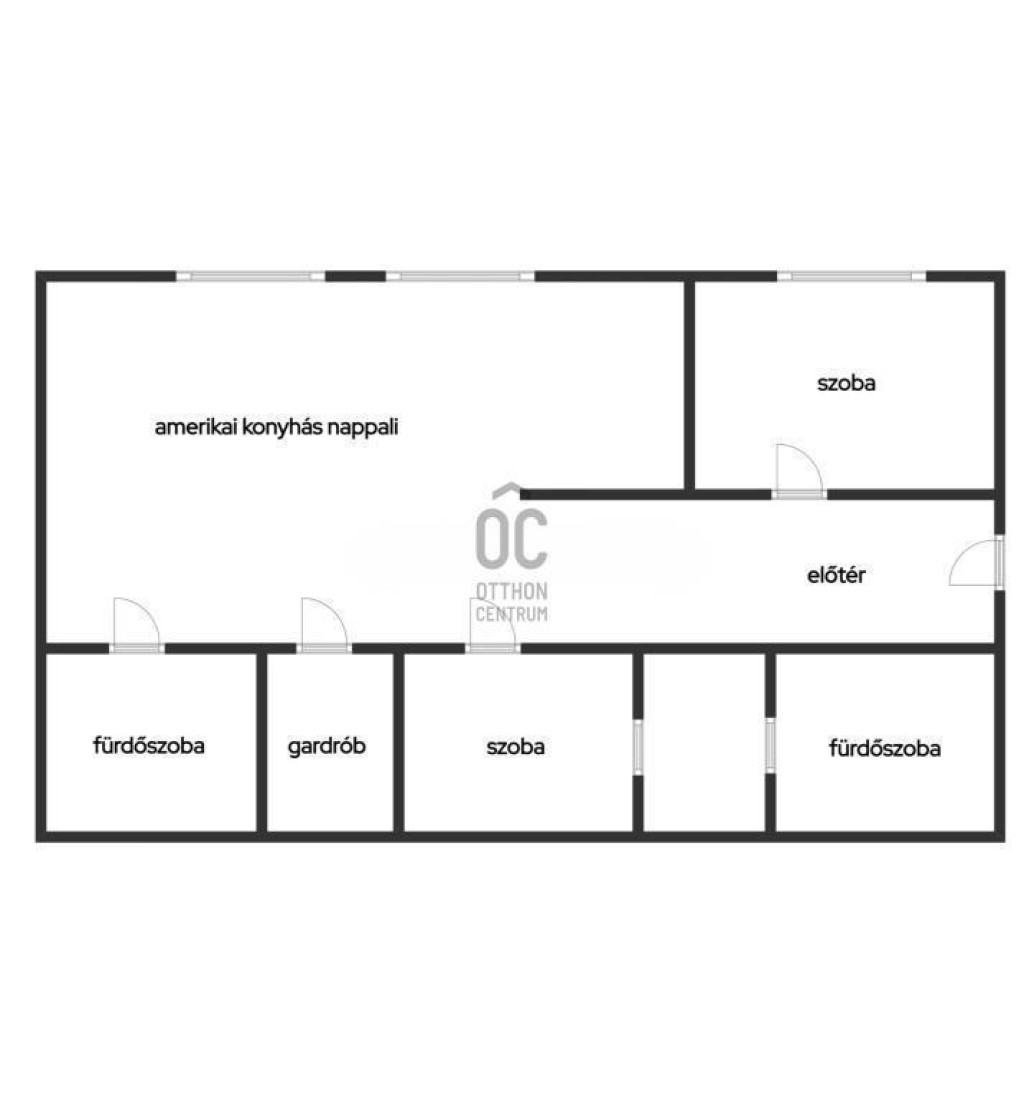 amerikai konyhás nappali + két hálószobás, két fürdőszobás, gardróbbal felszerelt