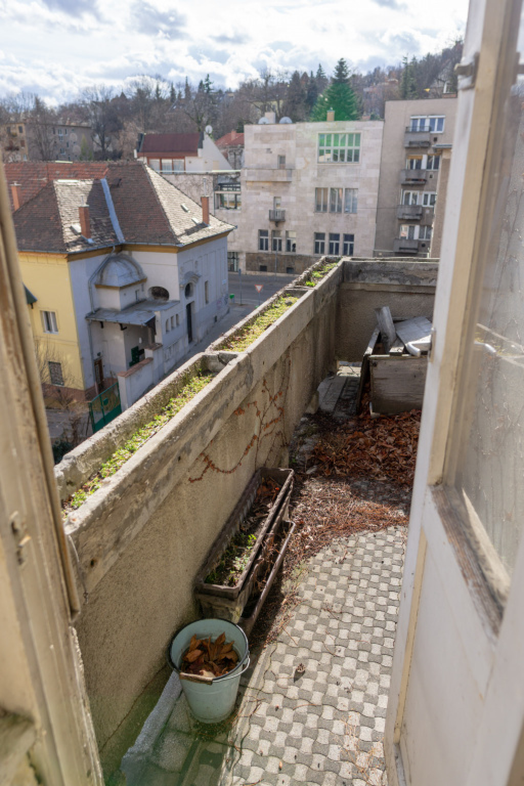Időtlen Bauhaus elegancia a Városmajor mellett – tágas, dupla erkélyes polgári lakás eladó Budán.