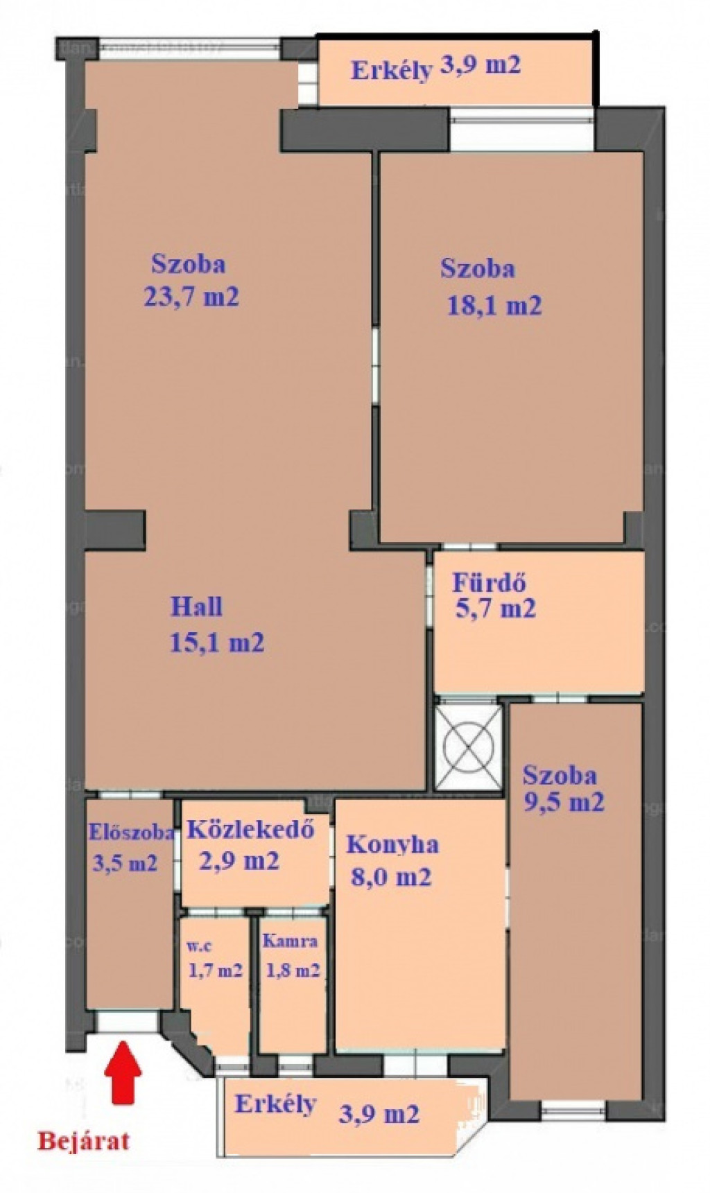 A lakás külön konyhával, kamrával, vendégmosdóval, házközponti fűtéssel és saját tárolóval rendelkezik.