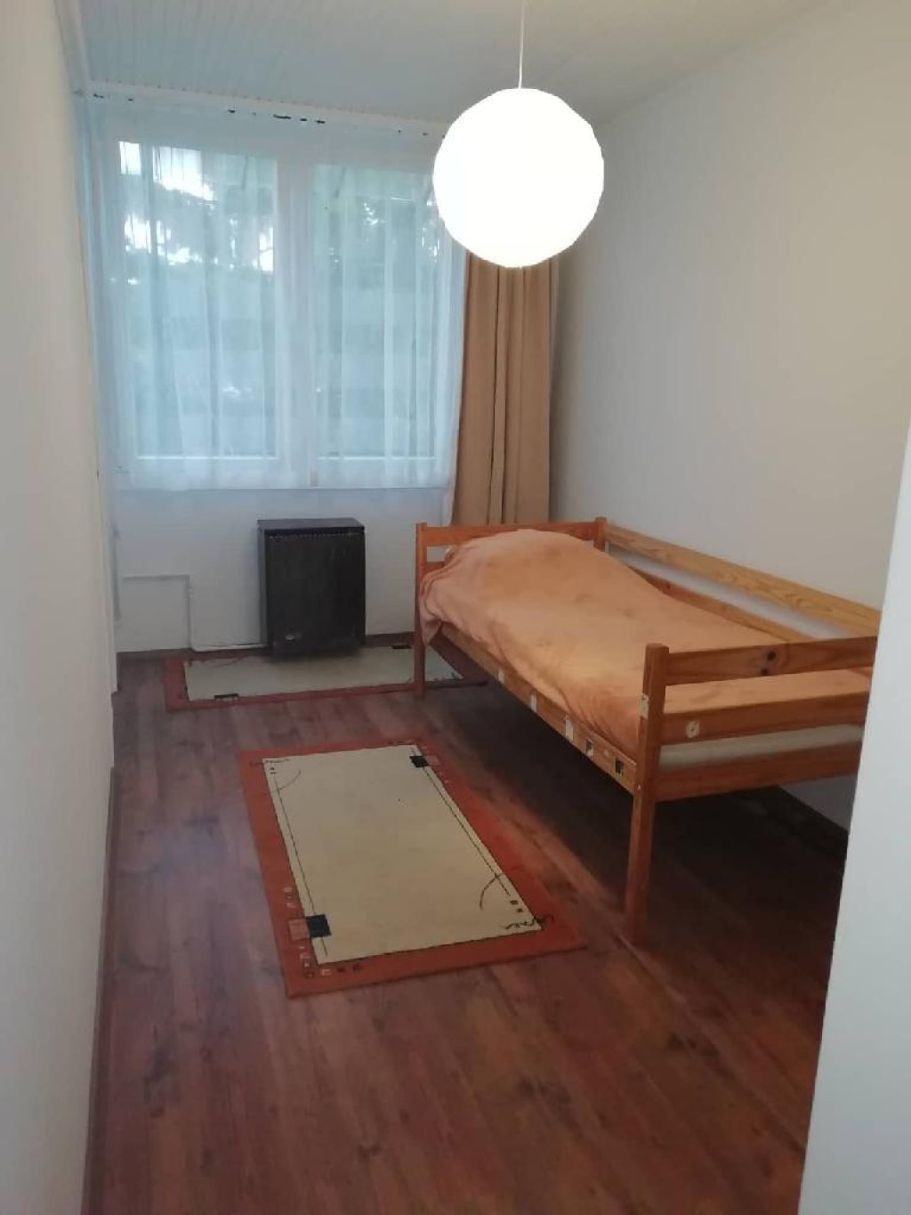 A lakás a második emeleten található, a szobák ablakai a szép és örökzöld fákkal tarkított kert felé néznek, világosak.