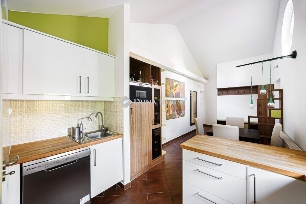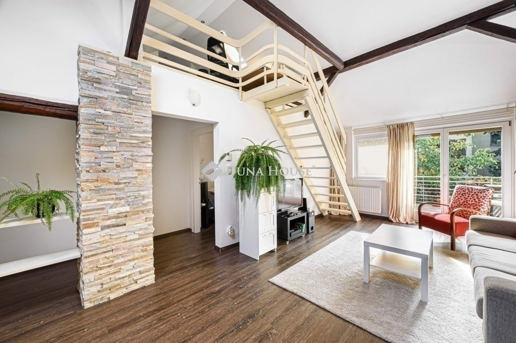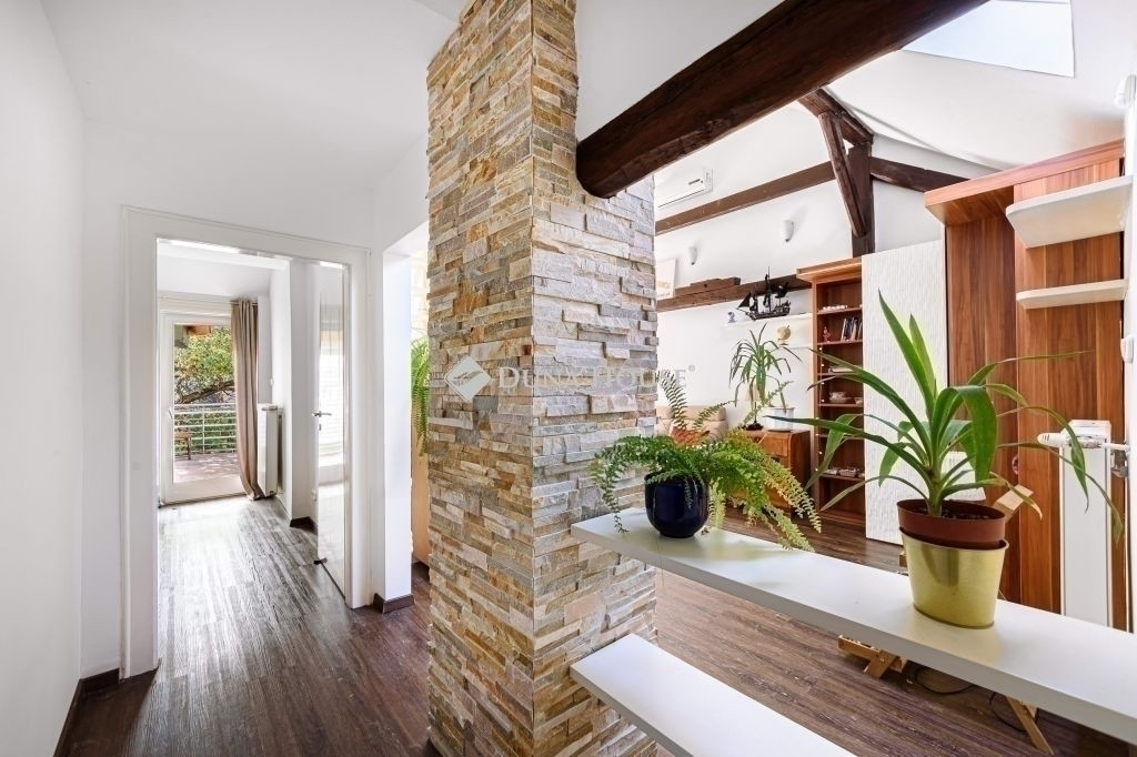 Eladó egy 80 m²-es, belső kétszintes, különleges hangulatú lakás 12 m²-es, kertre néző saját terasszal Budapest egyik legjobb részén.