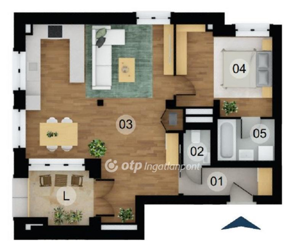 A hirdetésben szereplő lakás, az F épület 1. emeletén helyezkedik el, ÉNY tájolással, 62.34 m2 alapterülettel, mely életteret tovább növeli az 5.49 m2 alapterületű terasz.