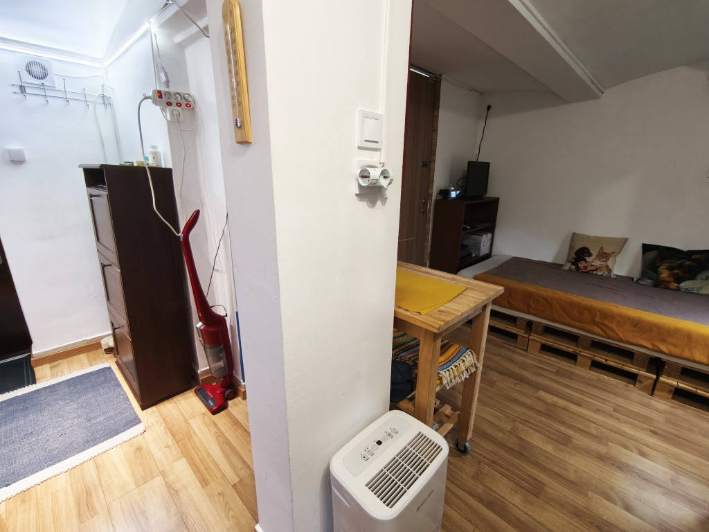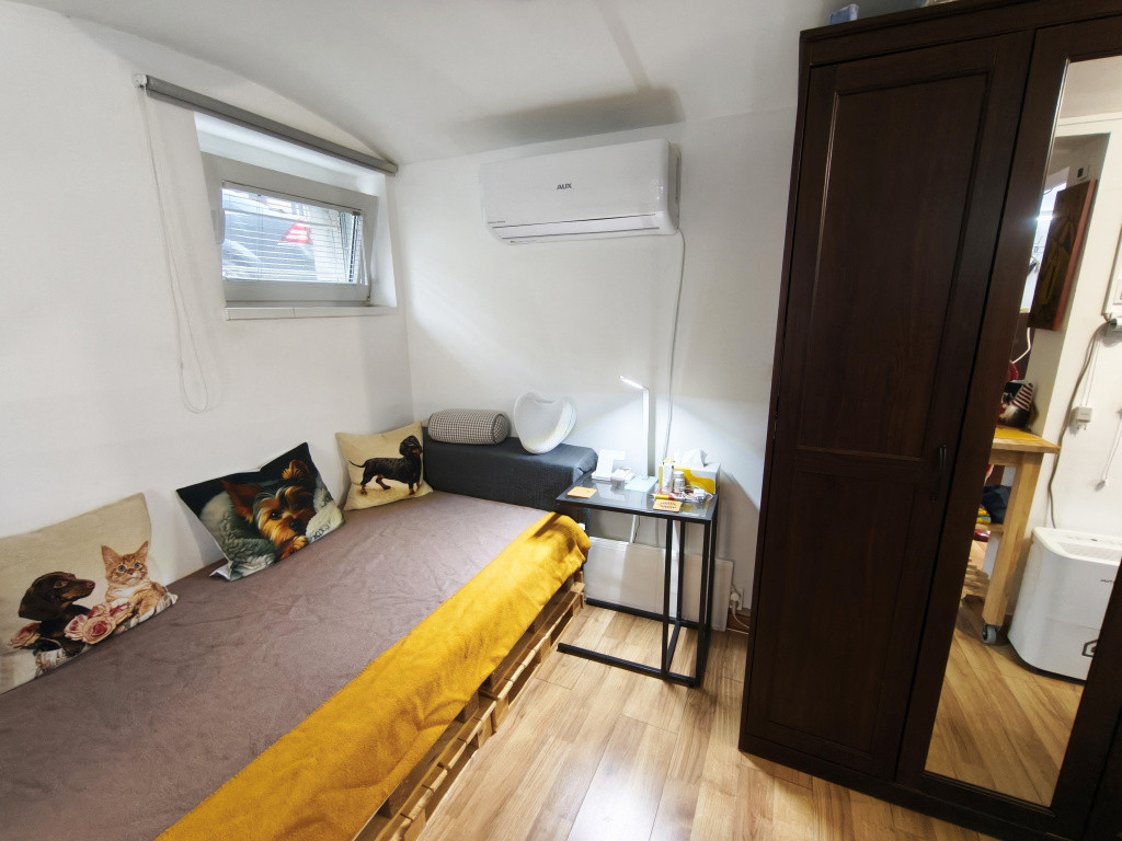 A lakás csendes, szigetelt (10 cm), klímás (hűtő-fűtő) 20 nm-es téglalakás.