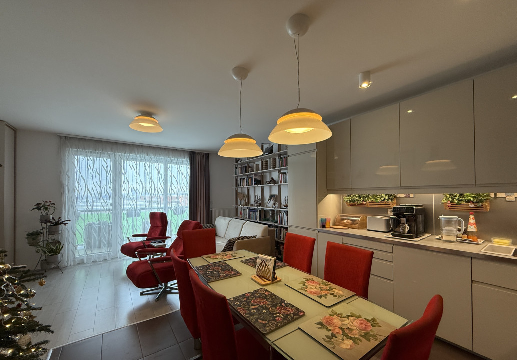 - elegáns nappalitér (kb. 22nm) tágas konyhával étkező térrel (összesen kb. 29nm),