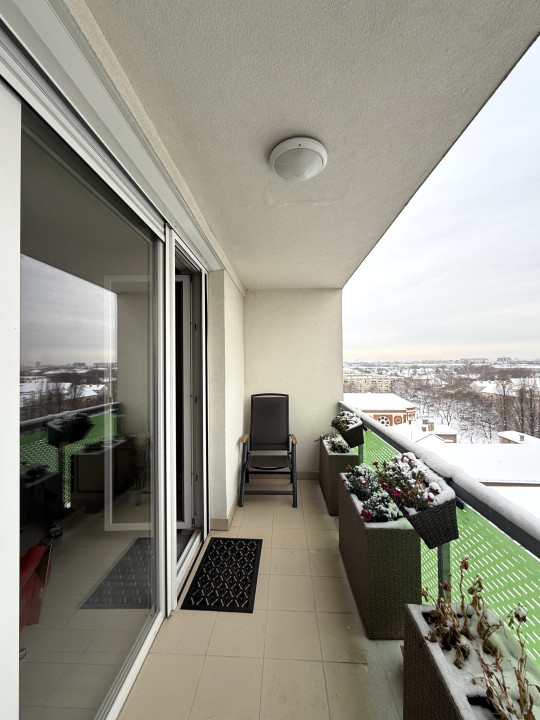 a sunny, top-floor (8th-floor), 4-room apartment with 2 terraces, with a total area of 82.5 sqm (according to the title deed: 77 sqm internal floor area plus approx. 11 sqm total terrace area), a like-new luxury apartment with a full panoramic view and extras, is for sale,