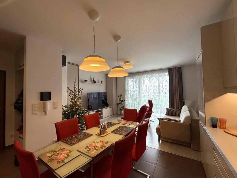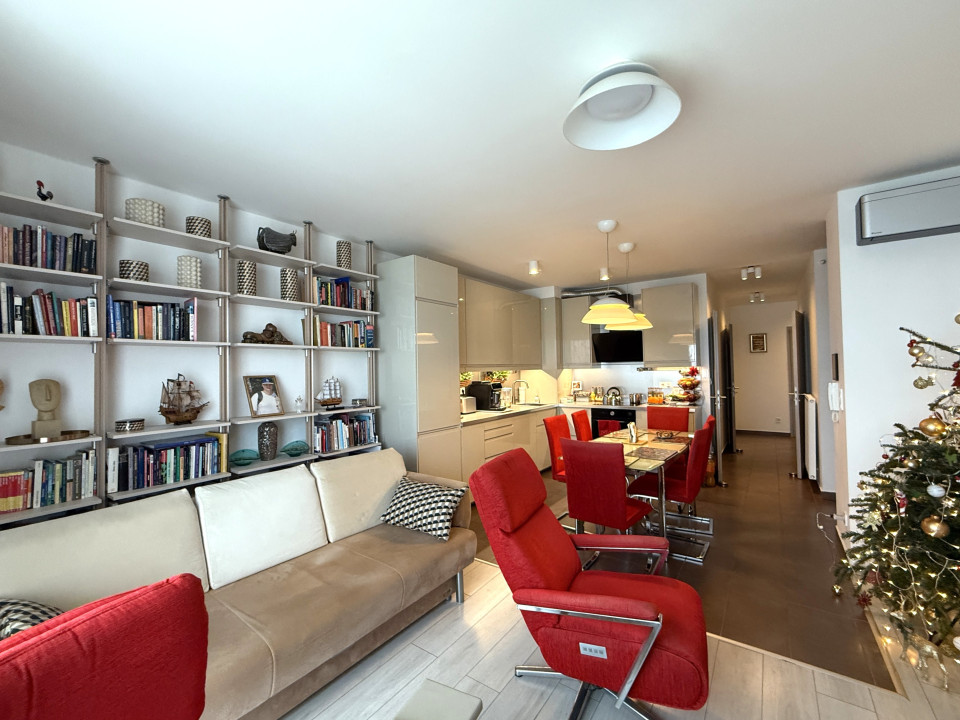 - elegant living room (approx. 22 sqm) with a spacious kitchen and dining area (total approx. 29 sqm)