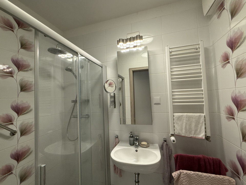 - 2 bathrooms opening from the corridor connecting the living and sleeping areas: an elegant bathtub bathroom and an exclusive walk-in shower bathroom, both with heated towel rails