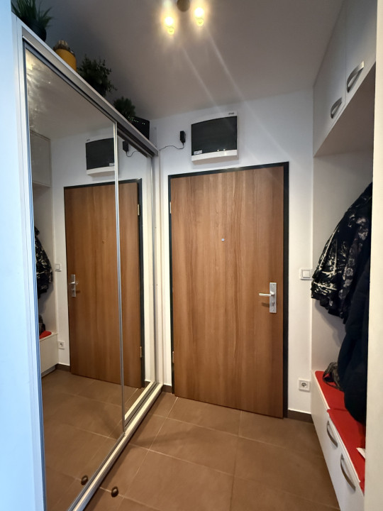 - entrance hall with mirrored built-in wardrobe and entryway wall unit