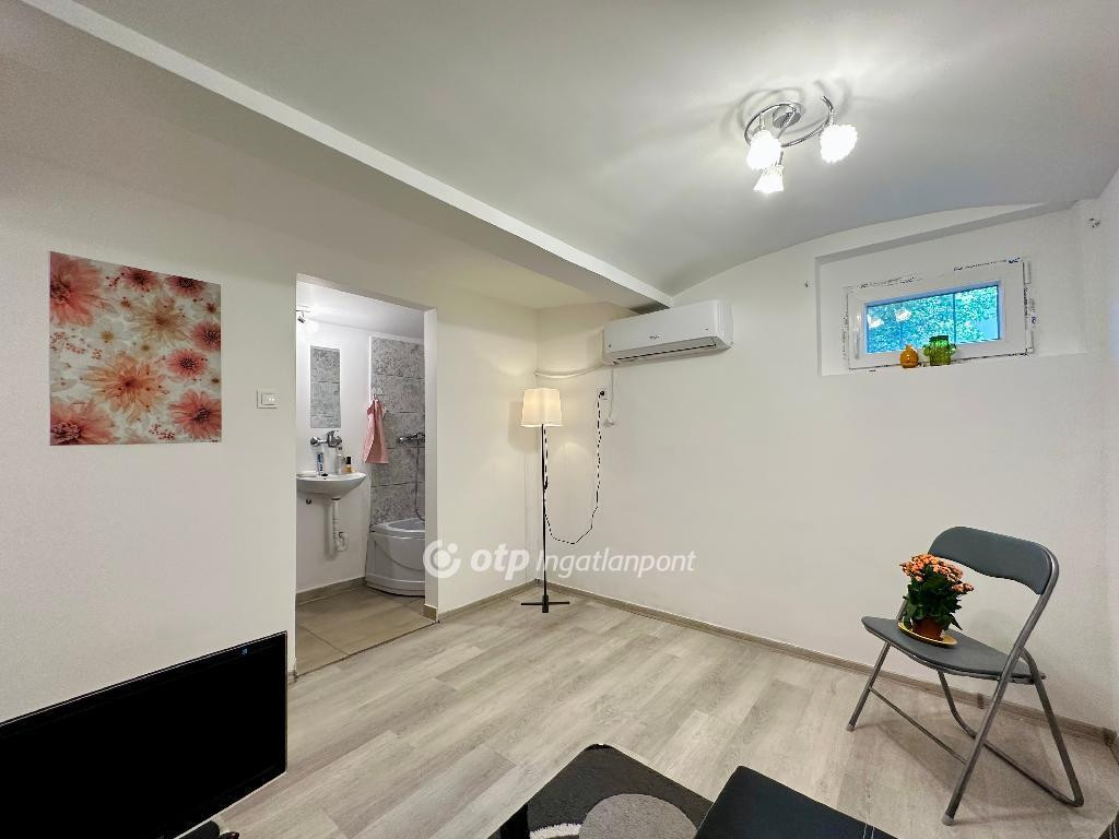 Ez a 18 m?-es, világos, ablakos lakás egy rendezett, csendes és kulturált lakóközösségű házban található, közvetlenül egy park mellett, forgalomtól mentes környezetben.