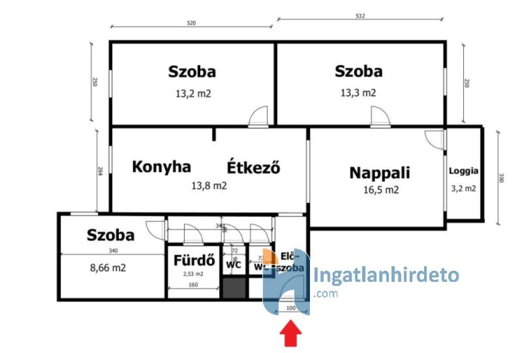 - loggiás (3,2 m2) - belső kertre néz