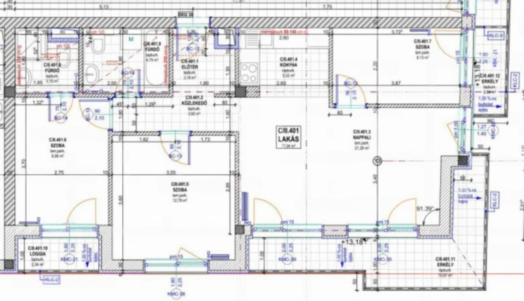 A lakás a 4. emeleten található egy 5 szintes társasházban, és összesen három terasz kapcsolódik hozzá, együtt 16 m² alapterülettel.