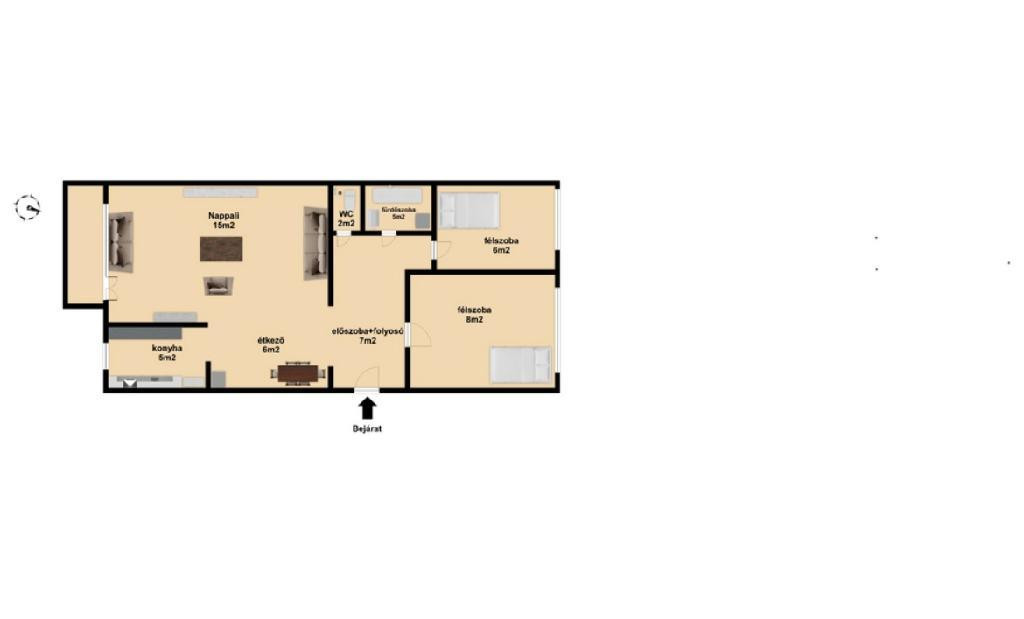 A lakás tágas, világos nappalijából egy hangulatos erkély nyílik, ahonnan zöld, fákkal teli, zárt udvarra nyílik kilátás. Itt padok és egy kis játszótér is található, igazi békés, parkos környezetben madárcsicsergéssel, mégis a város szívében. A két külön nyíló hálószoba praktikus elrendezést biztosít, a konyha modern és gépesített, a fürdőszoba kádas, a WC külön helyiségben található. Az előszobában beépített szekrények segítik a tárolást.