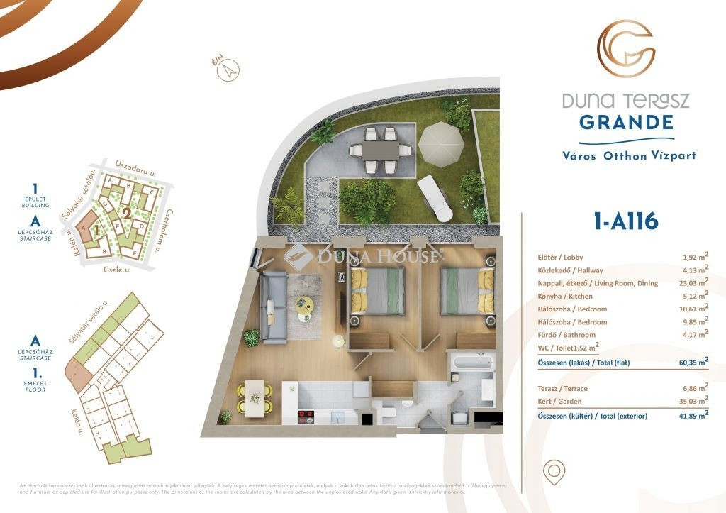 - Terasz + kert: 41 m²