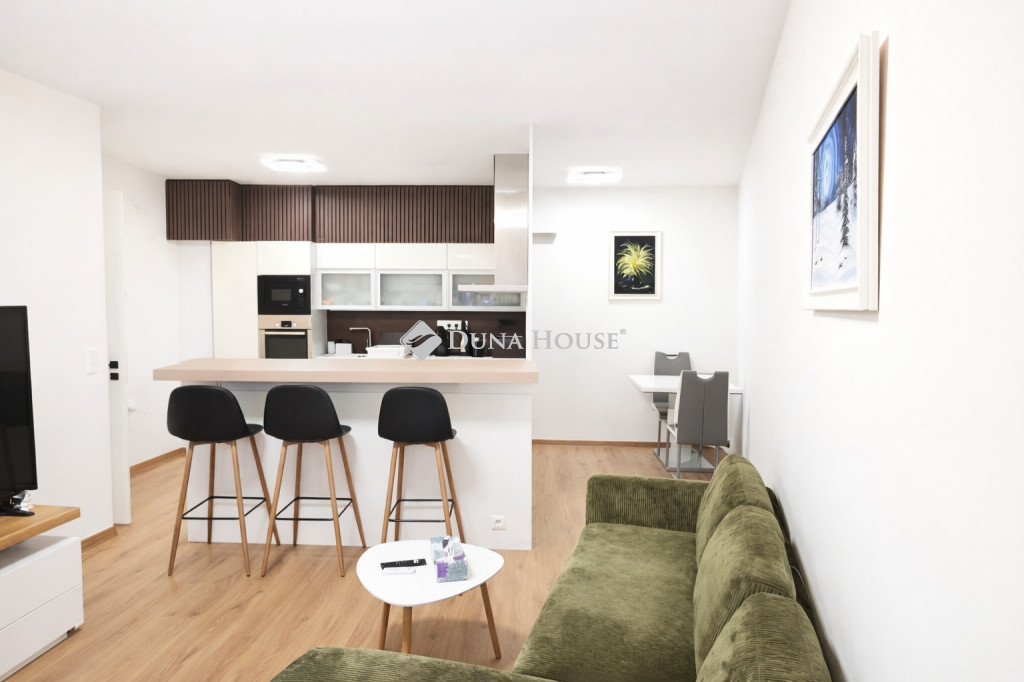 A lakás teljes bútorzattal kerül értékesítésre, így akár kulcsátvétel után azonnal élvezhető, vagy bérbe adható. A nagy terasz és a kert igazi ritkaság!