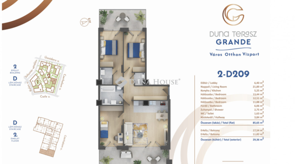 Exkluzív 3 hálószobás lakás a Marina Part szívébenEladó egy 2. emeleti, 85,65 m²-es lakás három hálószobával, világos nappalival, külön konyhával, fürdőszobával és zuhanyzóval, valamint külön WC-vel rendelkezik kialakítása ideális családok, párok vagy akár befektetők számára is.A lakás két tágas erkélye összesen 29,36 m²-en nyújt lehetőséget a reggeli kávé vagy a nyári vacsorák élvezetére, miközben a Marina Part páratlan hangulatát élvezheti.Főbb jellemzők:85,65 m²-es lakás, tökéletes elrendezés3 külön nyíló hálószobavilágos, tágas nappalikülön fürdő és zuhanyzó2 erkély, összesen közel 30 m²modern, új építésű környezetDuna-parti elhelyezkedés, parkosított környezetA Duna Terasz Grande lakópark nemcsak otthon, hanem életstílus: zöld, gondozott belső kertek, vízparti sétányok, prémium szolgáltatások és kiemelkedő lokáció várja leendő lakóit.Ez az ingatlan tökéletes választás, ha a nyugalom és a pezsgő városi élet előnyeit egyszerre szeretné élvezni.