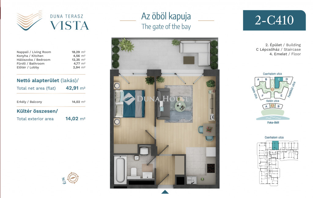 Eladó exkluzív 2 szobás lakás a Marina Parton vízparti társasházban!Fedezze fel a modern városi életstílus és a természet közelségének tökéletes harmóniáját Budapest egyik legkeresettebb részén a Marina Parton!-Lakás jellemzői:Újépítésű, exkluzív társasház 4.. emelet2 szoba, összesen 42,91 m² lakótérTágas, 14,02 m²-es erkélyUtcai nézet, világos, csendes lakásÁtadás várható: 2026. szeptember-Befektetésnek és otthonnak is ideális:Legyen szó hosszú távú befektetésről vagy saját használatról, ez az ingatlan biztos választás. A Marina Part kiemelkedően jó lokációval, magas bérleti hozammal és folyamatos értéknövekedéssel büszkélkedhet.-Fizetési ütemezés elérhető!Ne maradjon le erről a páratlan lehetőségről! Keressen bizalommal.