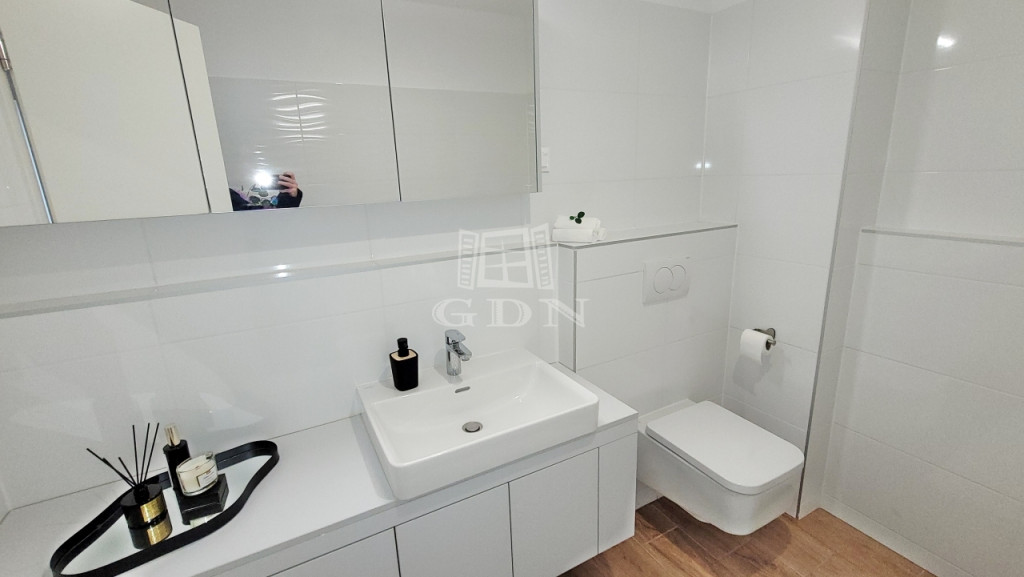 Beépített előszoba, - fürdőszoba (mosógéppel) és konyhabútorral, plusz gépek (sütő, főzőlap, mikrohullámú sütő, szagelszívó, hűtőgép és fagyasztó. Konyha sziget.