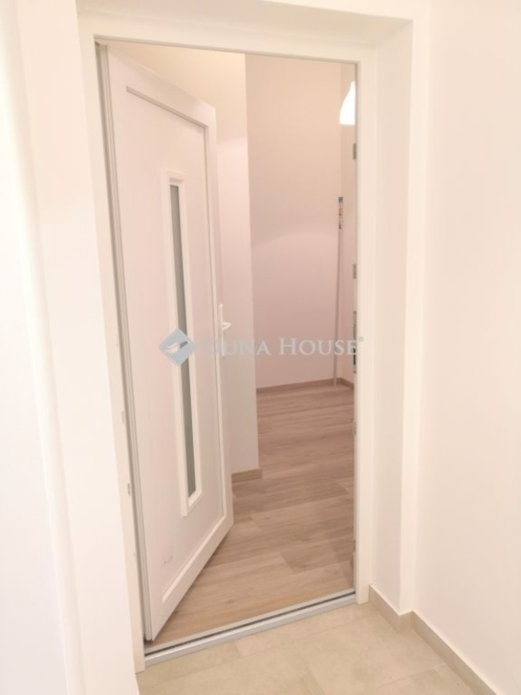 A bejárat előtt egy kifejezetten praktikus, zárt előtér található, ahol egy hatalmas beépített szekrény is megtalálható, kulturált, rendezett tárolási lehetőséget biztosítva az ingatlant használók számára, akár kerékpár, roller biztonságos parkolására is alkalmas. A helyiség mosókonyhaként is hasznosítható, melyhez mosógépkiállás és mosógép is telepítésre került.