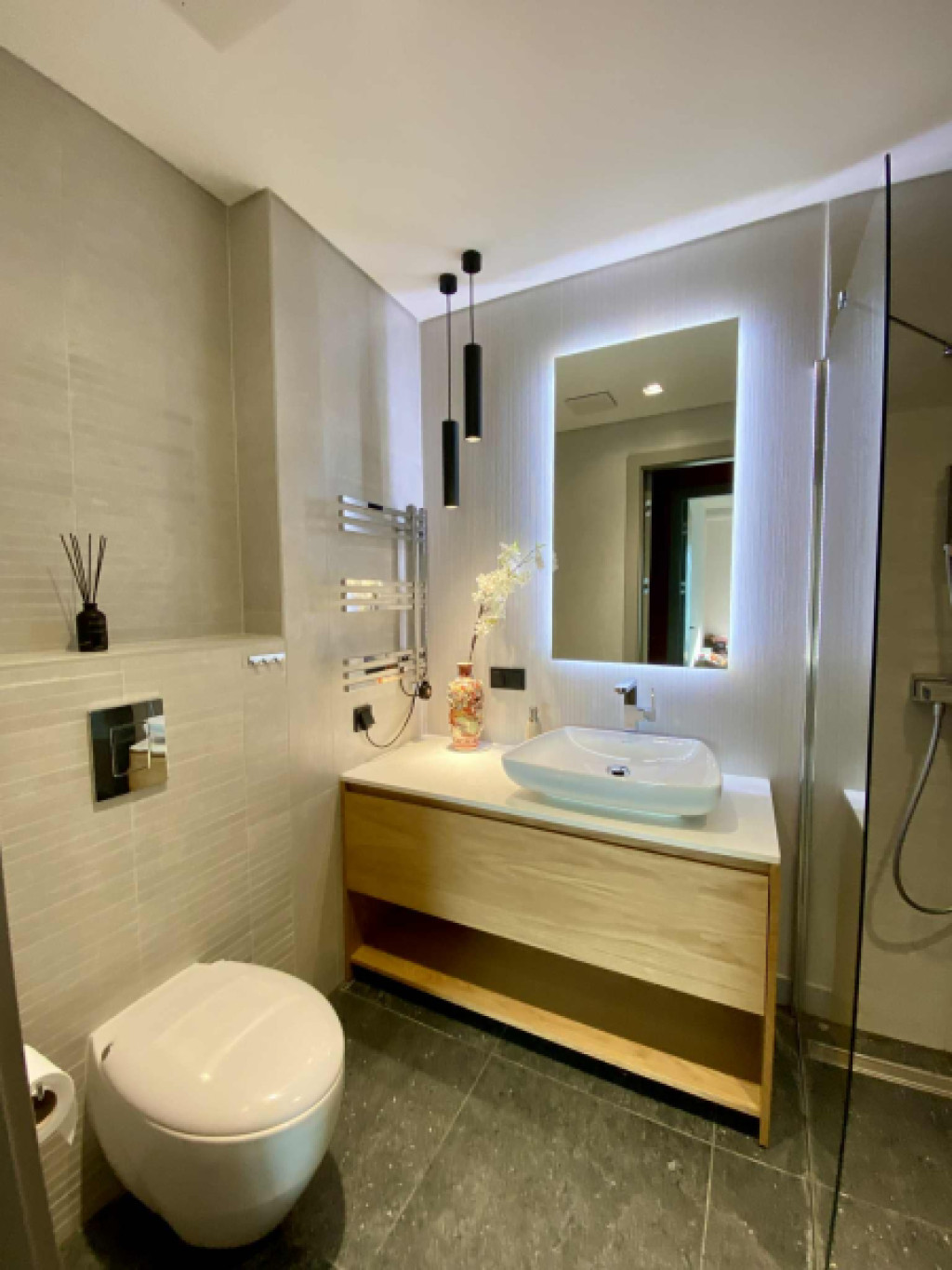 A lakást a belső építész a koráll színek árnyalatával díszítette, amely nem hivalkodó, elegáns és diszkrét, melytől jó itt lenni.
