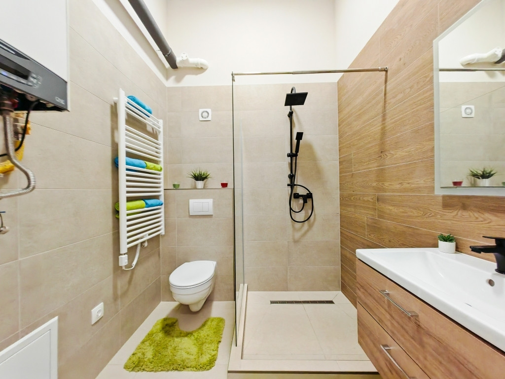 - a fürdőszoba tágas zuhanyzóval lett kialakítva