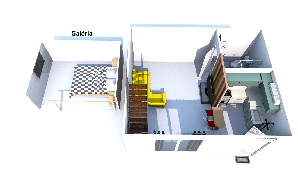 - az ingatlan tulajdoni lapon 29 m2, de ehhez tartozik még egy 11 m2 galéria, ahol a belmagasság 155 cm, galéria alatt 210 cm és a belmagasság 370 cm