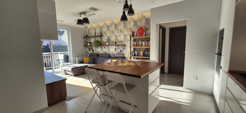 Elrendezés: amerikai konyhás nappali + 2 különnyíló hálószoba, mindegyikből kijárat a 8 nm-es teraszra